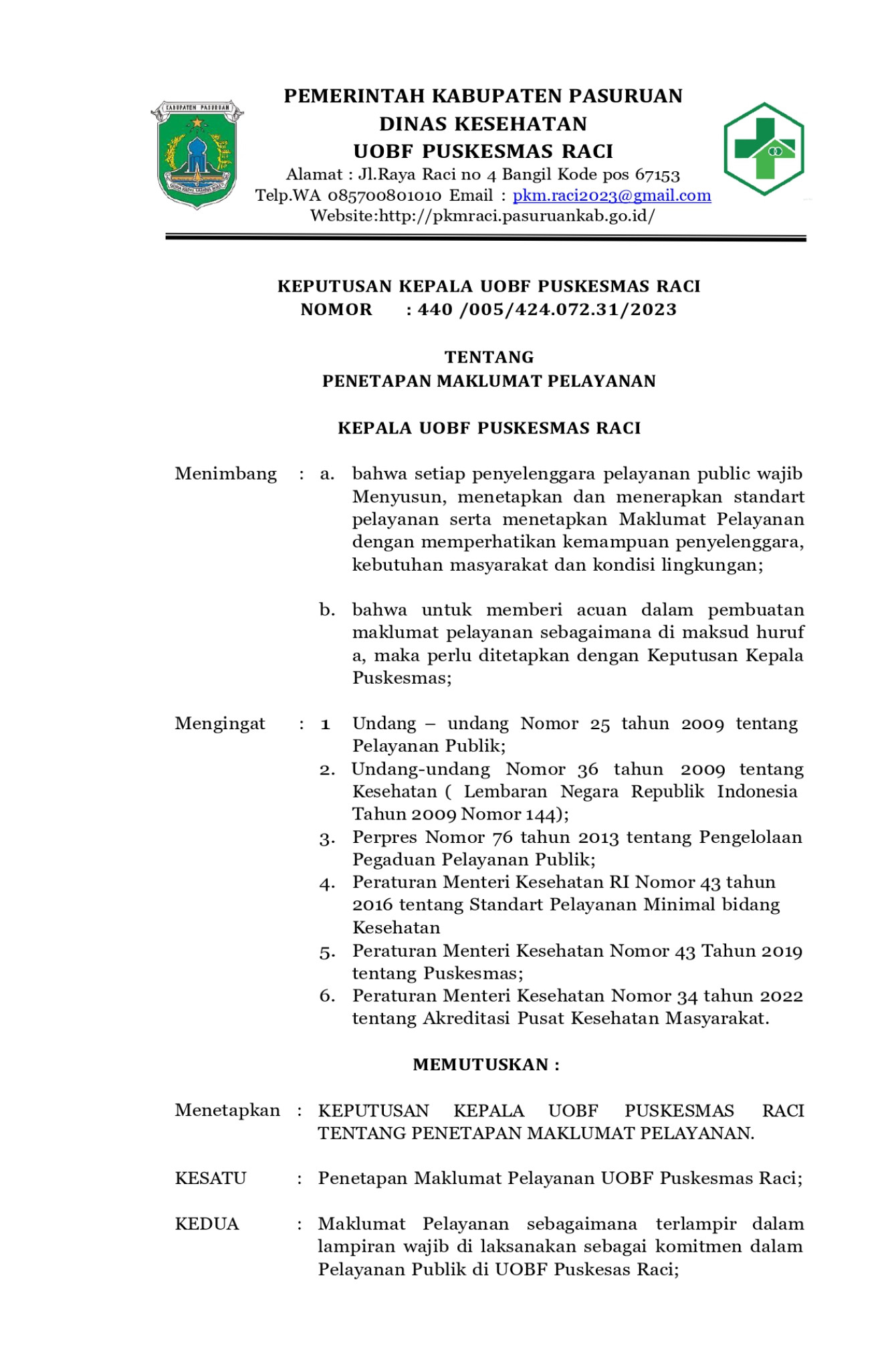 Jenis dan Jam Pelayanan